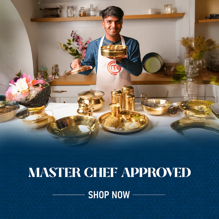 Embrace authentic craftsmanship with our meticulously crafted copper, brass, and bronze utensils, ensuring durability and timeless elegance.