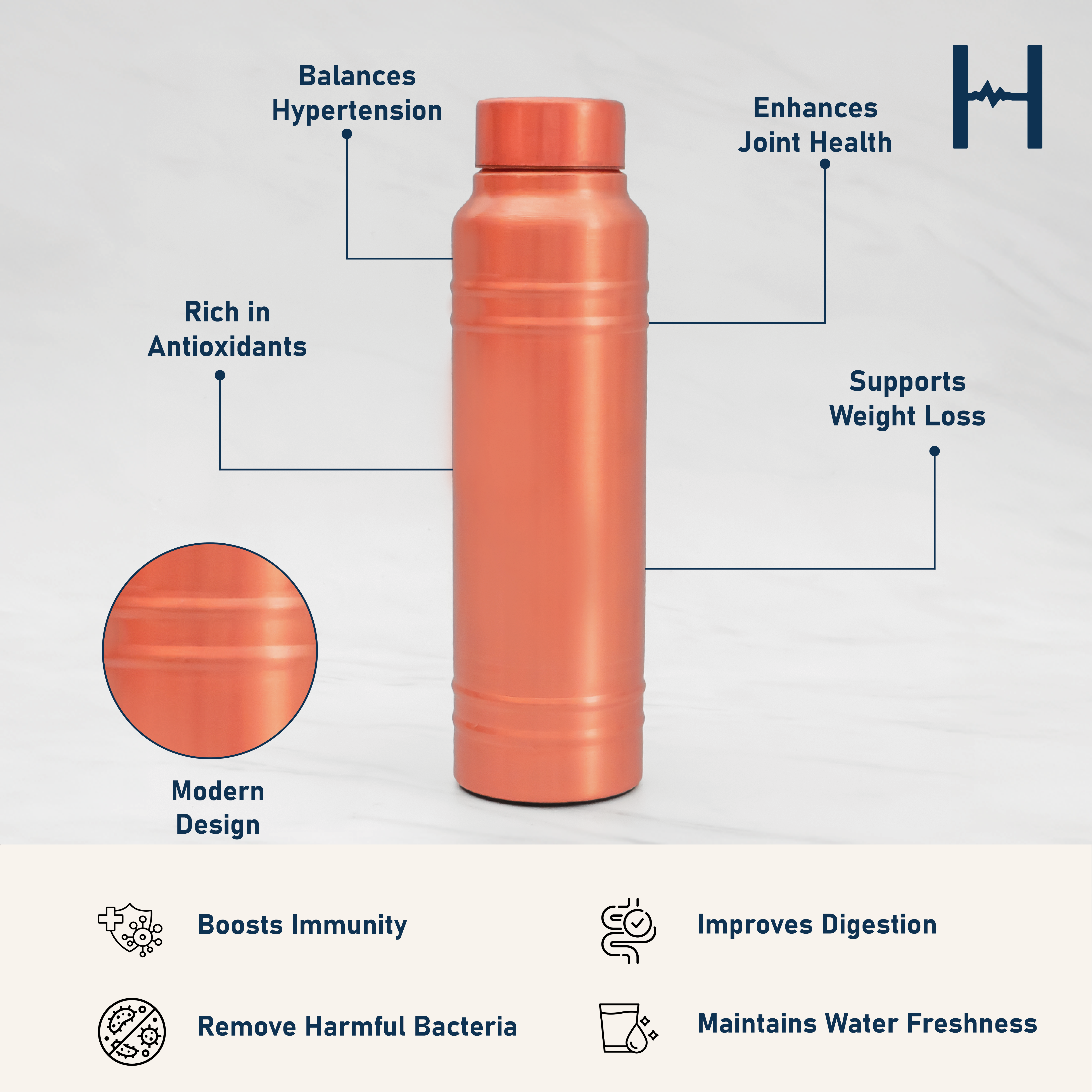 xExperience timeless elegance with our Robust Copper Water Bottle by Healthsmith, carefully crafted to combine style with health-enhancing properties. Made from high-quality copper, this durable bottle boasts natural antimicrobial properties, ensuring that each sip is refreshing and safe for consumption.