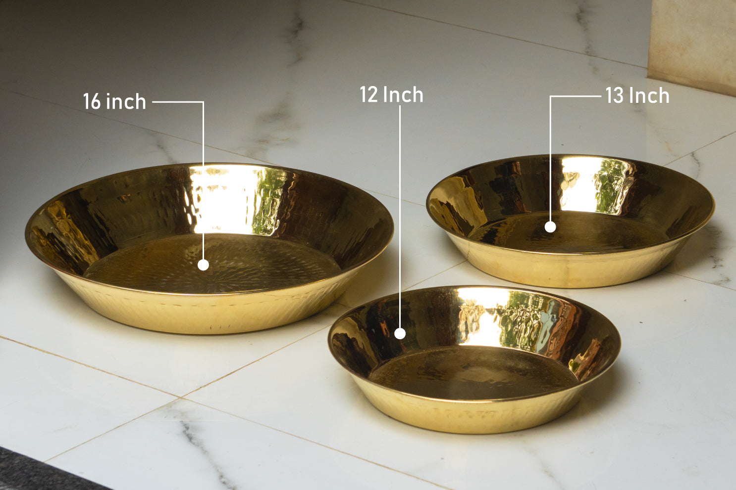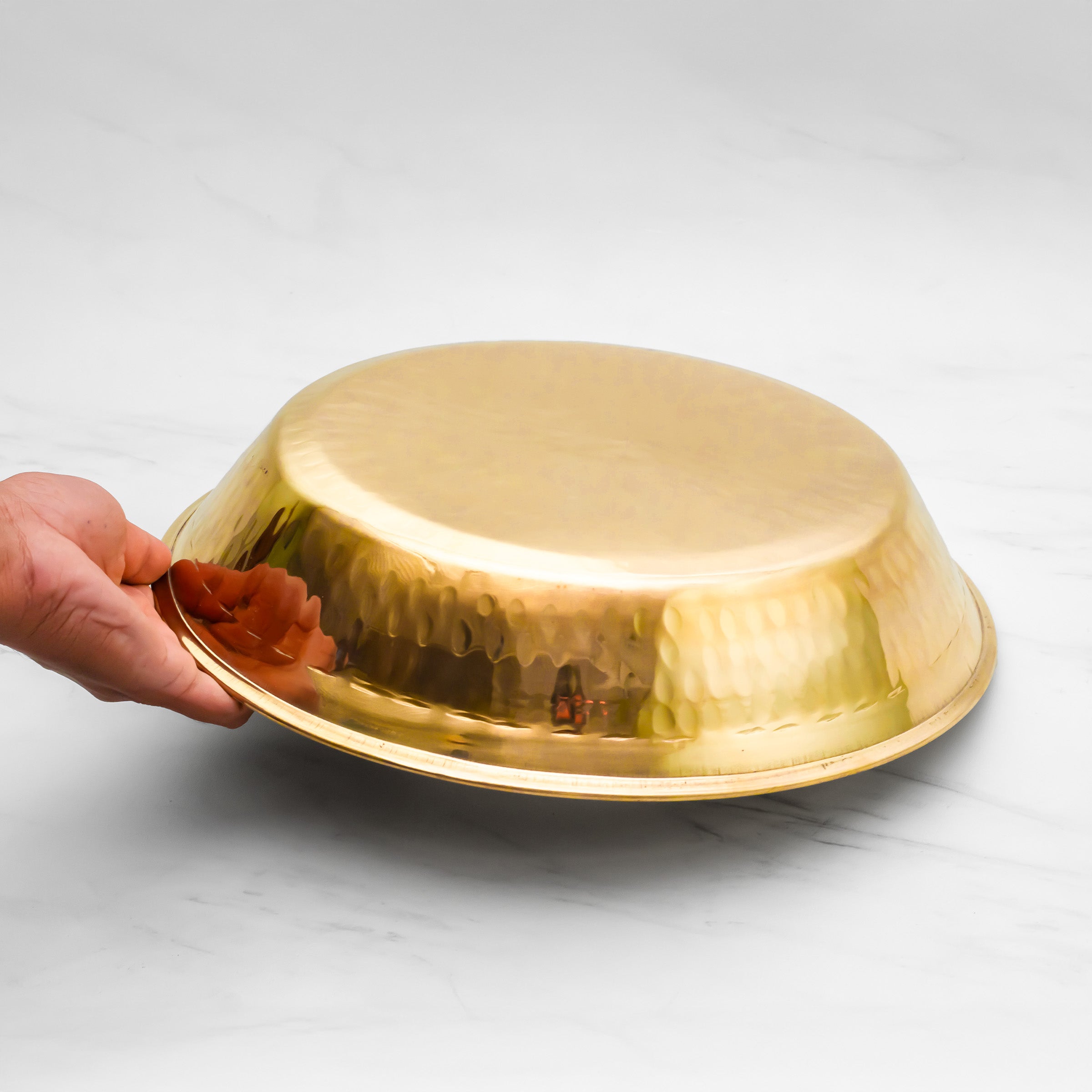 xThis brass parat is made from high-quality pure brass, ensuring durability and a classic look. It is traditionally used for kneading dough, mixing ingredients, and serving food. The wide, deep design provides ample space for various kitchen tasks. Its handcrafted finish with a golden sheen adds elegance to any kitchen or pooja setup. Corrosion-resistant and easy to clean, it ensures long-lasting use. A perfect blend of functionality, tradition, and style.