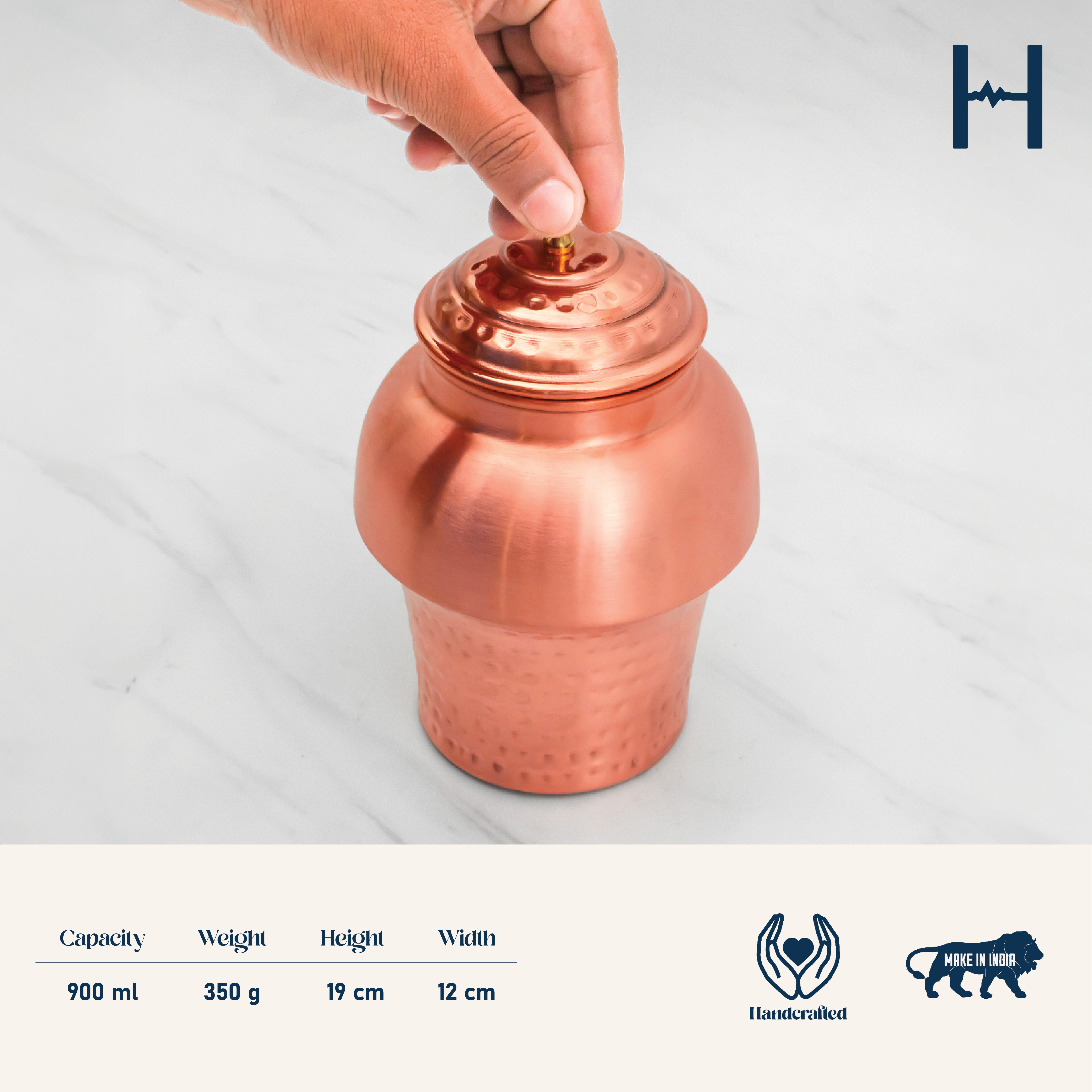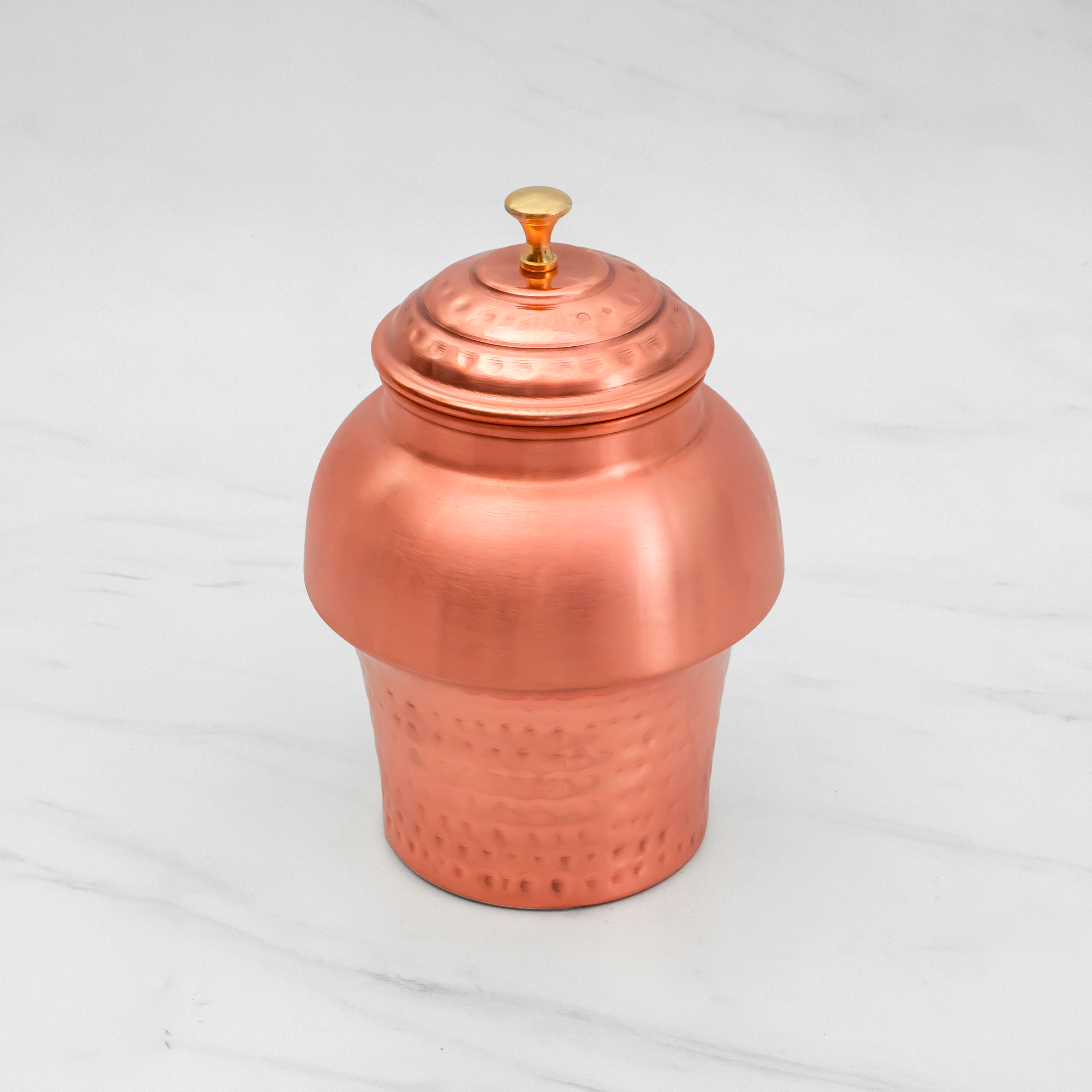 xThis copper jar is crafted from 100% pure copper, ensuring durability and elegance. It is perfect for storing water, spices, dry fruits, tea, coffee, or other essentials. The airtight lid preserves freshness and prevents contamination. Its handcrafted design adds a traditional yet stylish touch to any space. Naturally antibacterial, it promotes hygiene and health benefits. Ideal for home, kitchen, or gifting, combining beauty with functionality.