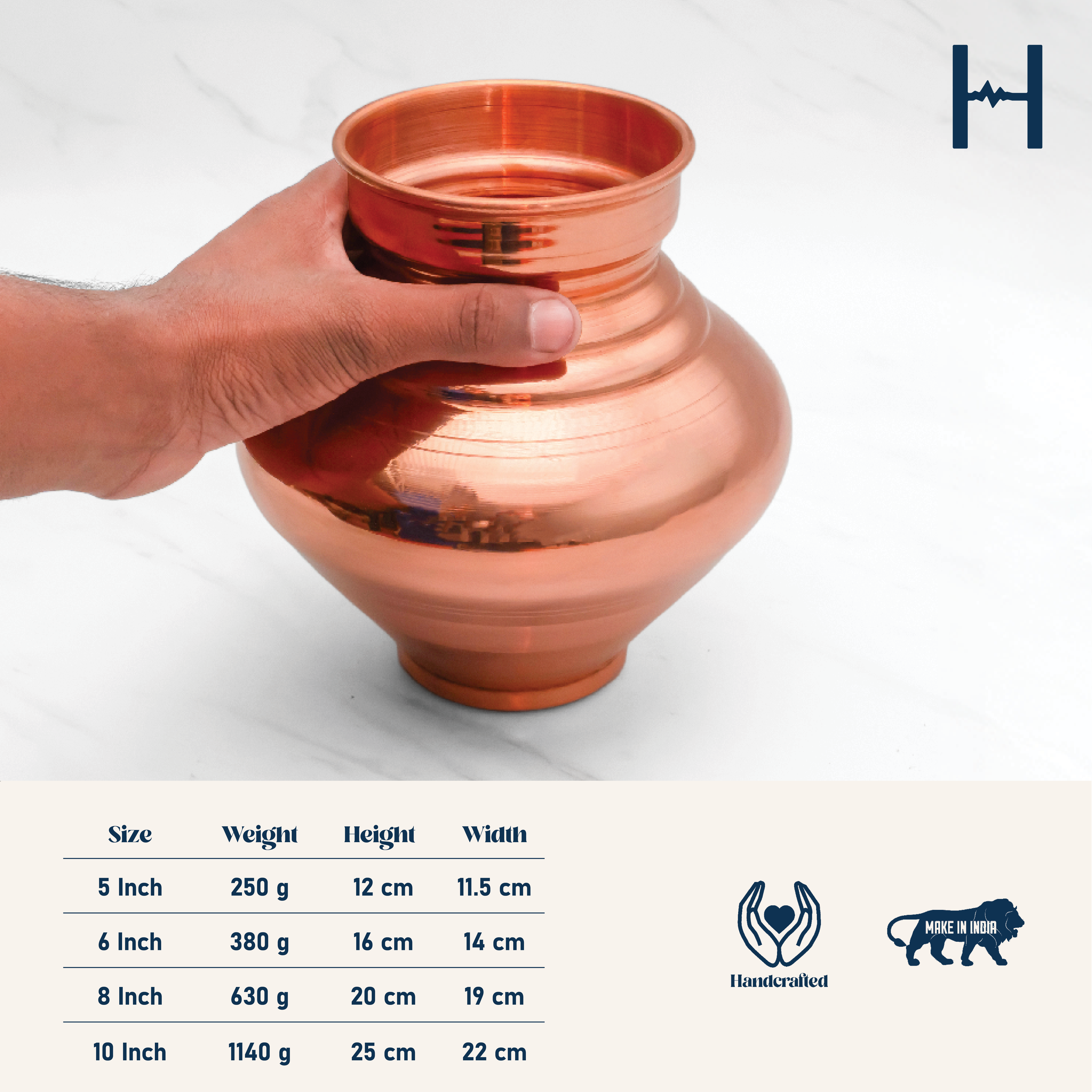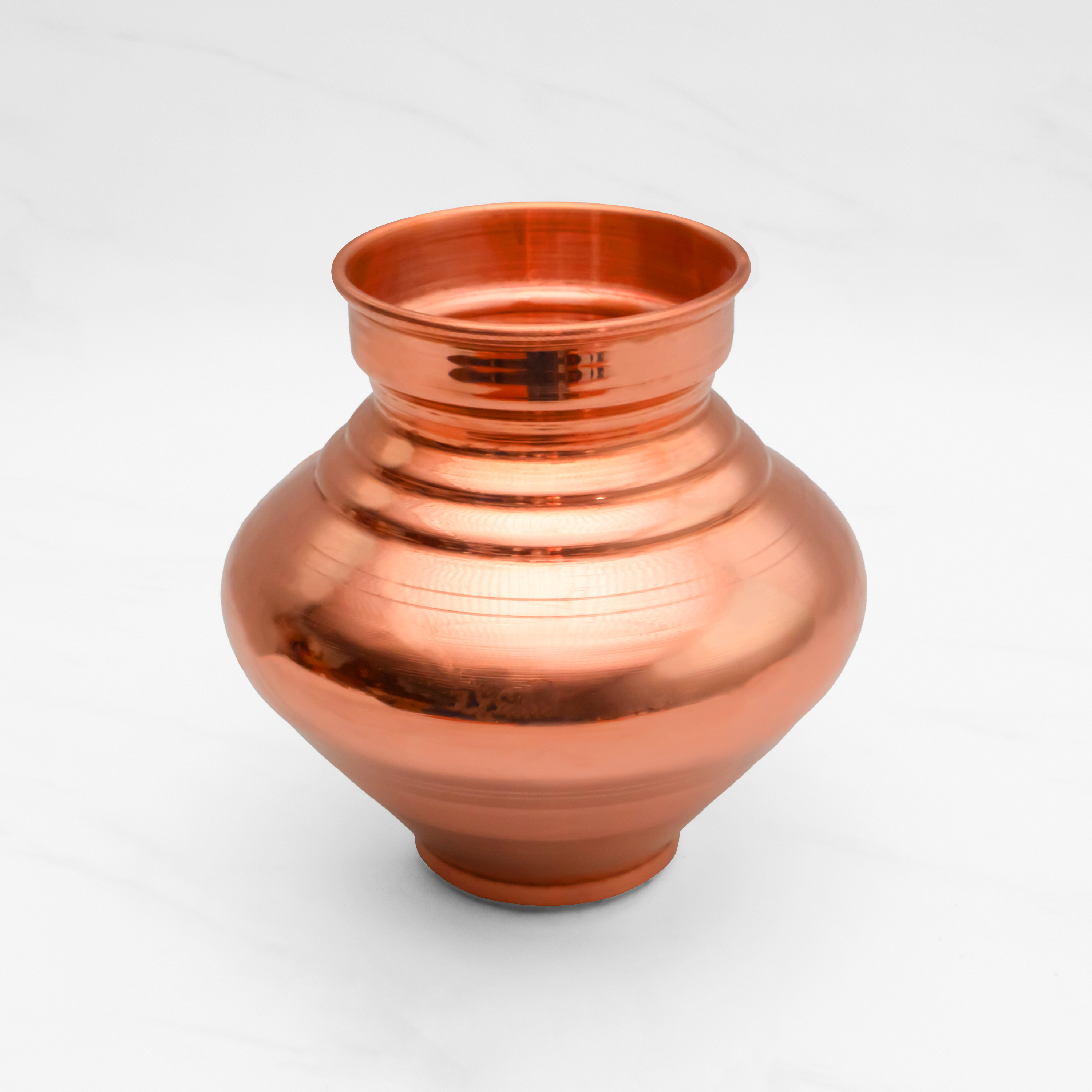 The traditional design features a smooth, polished finish, showcasing the fine craftsmanship. Perfect for ceremonial use, this Kalash adds a touch of grace to any occasion. Enjoy the health benefits of copper, such as improved digestion and enhanced immunity, while embracing heritage and health in your daily rituals.