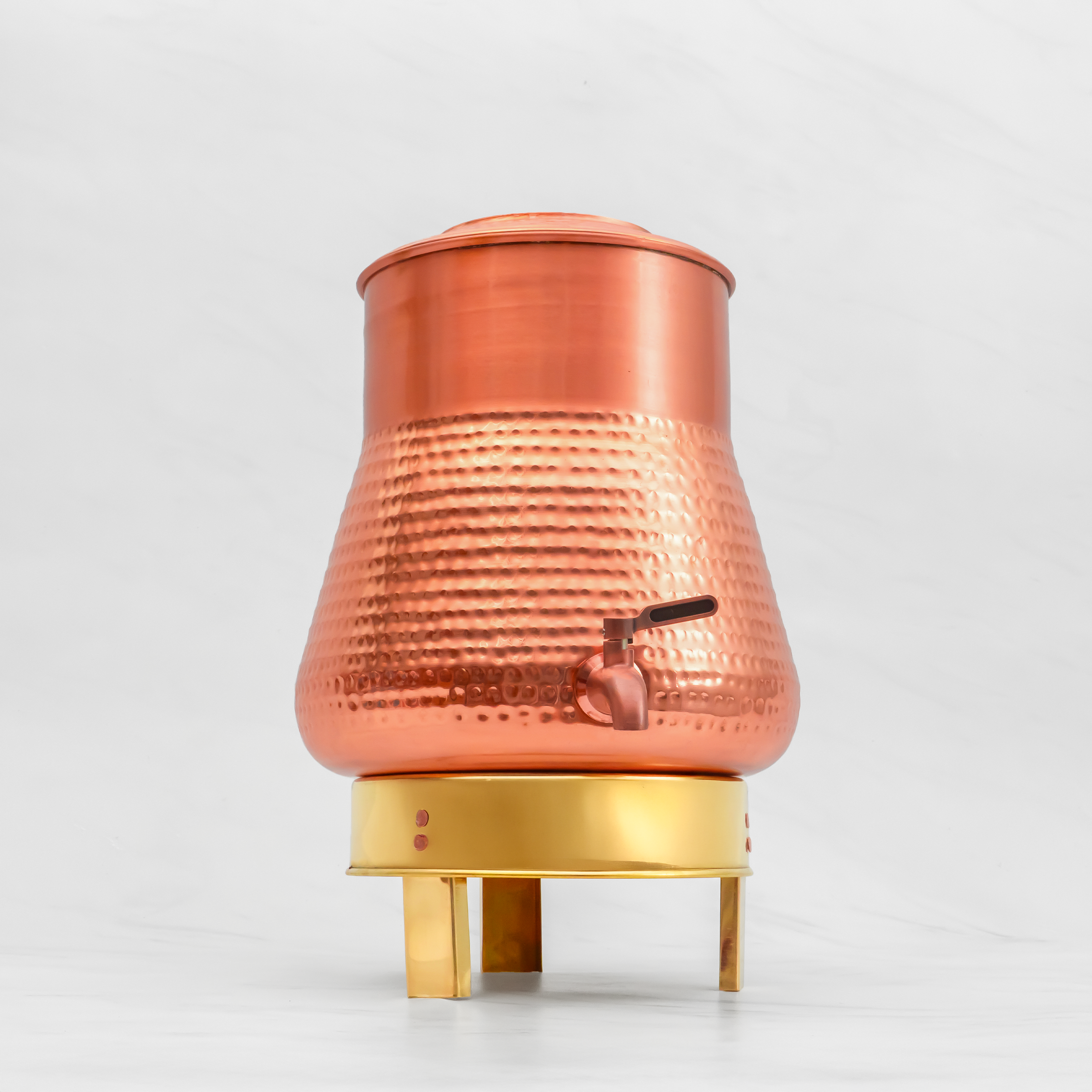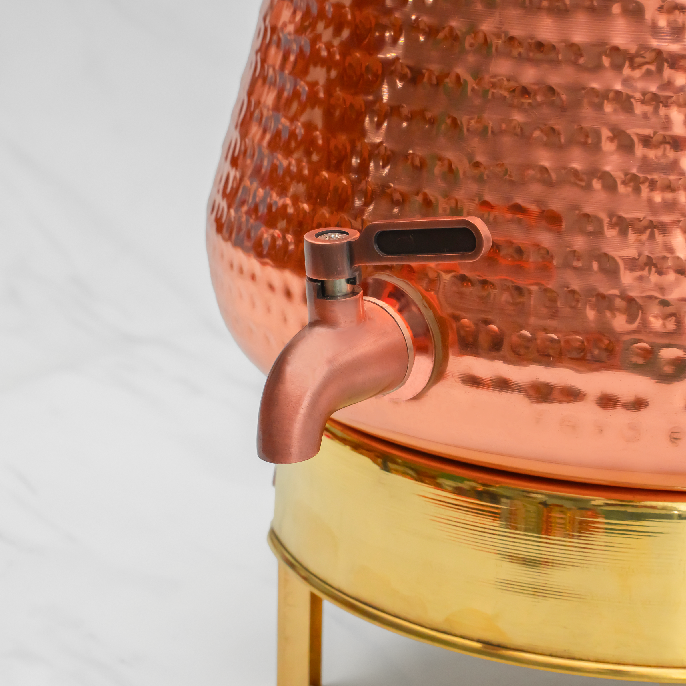 The Pear Pot Water Dispenser is good for your health but it's also a stylish addition to your home. Its unique round-bottom shape and hand-hammered design make it eye-catching and elegant. Each dispenser is handcrafted by skilled artisans, ensuring every piece is special. It also comes with a tap for easy access to fresh, copper-infused water whenever you need it. Choosing Healthsmith means choosing a product that offers both health benefits and beauty in all in one single package.