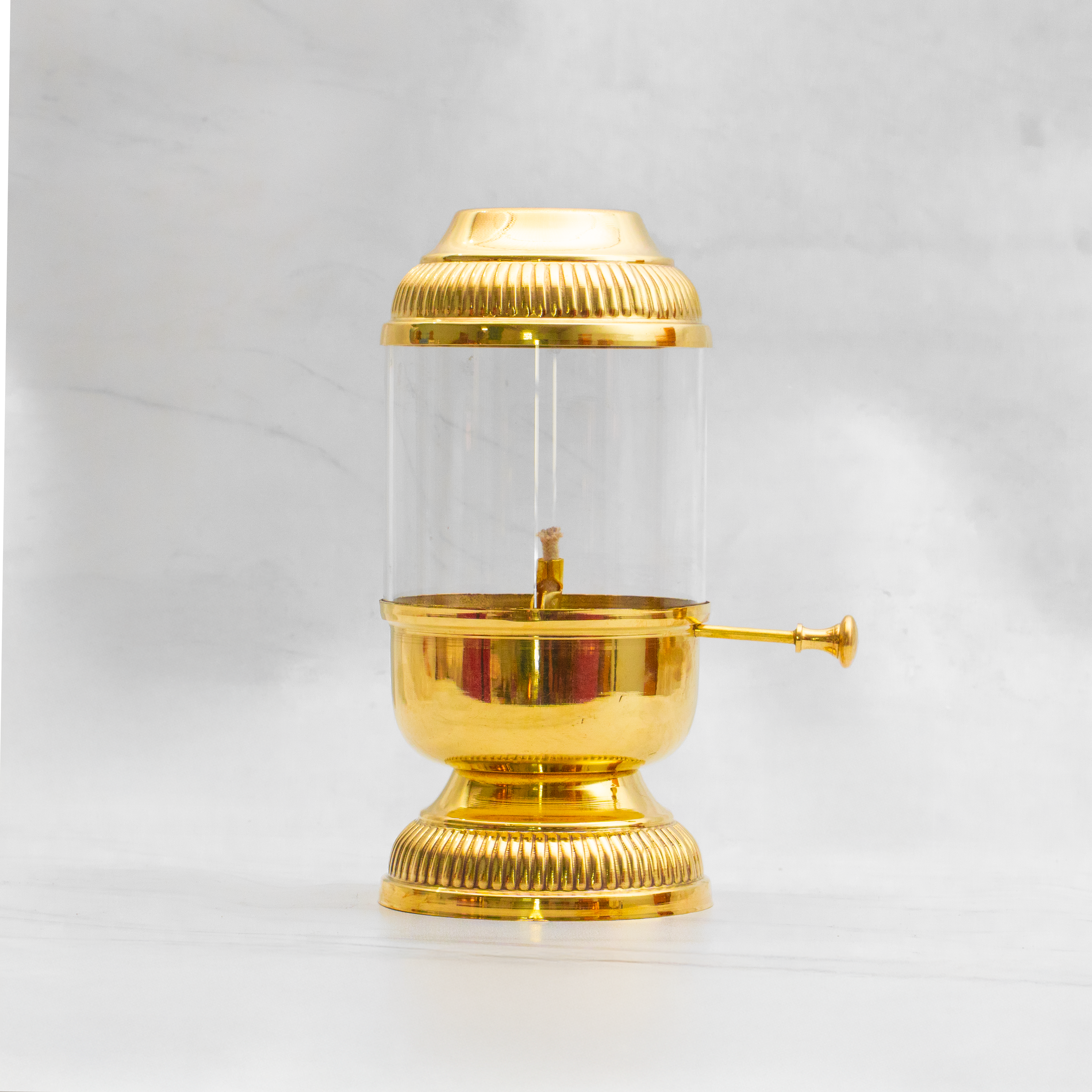 Healthsmith Pure Brass Akhand Jyoti Diya with Glass Cover & Adjustable Bati Knob | Windproof & Long-Lasting Diya | Akhand Deepak for Festivals, Daily Prayer & Home Décor