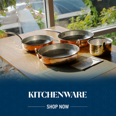 Embrace authentic craftsmanship with our meticulously crafted copper, brass, and bronze utensils, ensuring durability and timeless elegance.